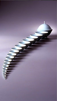Indicative of the perceived importance of the Japan Society event, the MoMA has loaned to the exhibition "Kumo no Kioku," by Kazuo Yagi, a pioneer of the postwar ceramic sculptural movement in Japan. Yagi is the central figure around whom our collection and this exhibition is built. Because the ceramic sculpture is fragile, it is rarely on view to the public, although the Japan Society Gallery was blessed with the work once previously in 1993 for its groundbreaking "Modern Japanese Ceramics in American Collections."