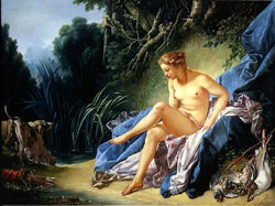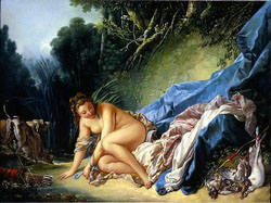 If he were merely copying what were originally photographs anyway, interest in Ogawa would likely subside, and soon. But he is also a kind of stylistic chameleon who reworks the oil-paint compositions of artists as various as Da Vinci (1452-1519), Francois Boucher (1703-70), or the Edo Period printmaker Suzuki Harunobu (1720-70). In the Harunobu diptych (which mimics the woodblock print medium in oils) "Lovers on Veranda" (2004), Ogawa goes as far as to sign Harunobu's name.