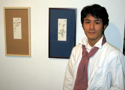 One artist who rests near one side of the rough grouping is Akira Yamaguchi, a painter in his mid-30s who went to school with the controversial artist Makoto Aida at the Tokyo National University of Fine Arts and Music. Yamaguchi's paintings mix traditional Japanese scenes and subjects with a modern sensibility that sometimes features strange hybrids of animals and machines.