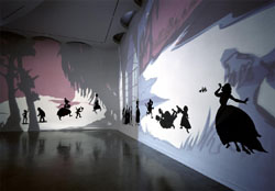 Walker's controversial work is confusing, as it both makes fun of a dark episode and makes you feel its terrible reality. Called "shameless" by some, Walker has said in an interview for the Museum of Modern Art, New York, that "I knew that if I was going to make work that had to deal with race issues, they were going to be full of contradictions." Her distance from the subject, and appropriation of 19th-century art forms, allows her a freedom to explore more present-day issues of race, power and desire.