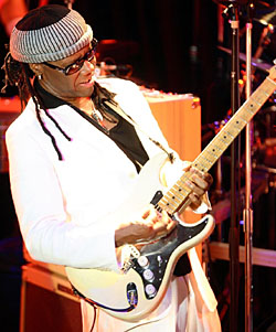 As Chic's guitarist and, with bassist Bernard Edwards, its coproducer, Rodgers was one of the architects of an influential sound that's finally getting its due. A March issue of New York Time Out, ranked Chic third among the city's top 50 musical acts of all time, putting them above Miles Davis and below Duke Ellington and The Velvet Underground. Chic stand out because their R&B wasn't blues-based — they opted for European-derived chord progressions instead.