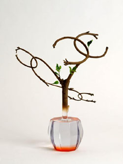 Perhaps the most intriguing piece in the show, Shyuhei Ohno's "Interior," is a seemingly impossible combination of organic materials and polyester resin. The curious amalgam features delicate bonsai-esque tree branches carefully pruned into the Chanel Double C.