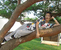 Not yet, we're just sitting here drinking. But last year I did. Everyone's very gentle and kind at this festival. It's totally different from Fuji Rock, the way people enjoy themselves is worlds apart. The people who come to Rock In Japan are here to see the bands, whereas people go to Fuji Rock for the atmosphere, the feeling of being in the mountains, or whatever.