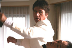 Kusakari stays a good sport throughout these shenanigans, playing his macho image to the ridiculous hilt, while never goofing on the material. As Miwa, the always excellent Kyusaku Shimada delivers more than the expected rock-jaw caricature, including a surprisingly passionate and reasoned (if loony) defense of his New World Order. Mei Kurokawa goes a bit over the top as the spunky girl reporter Haruki, but then, someone has to.