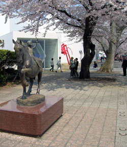 Last Friday at its official opening, as the countryside and downtown Kanchogai Dori were ablaze with cherry blossoms, crowds of the curious came out to this Aomori Prefecture town to see what the new art center housed. In addition to the fluttering flower petals, the city put on a show of its own, with horseback archery competitions in the downtown parks and dance and flag-waving performances on the blocked-off street.