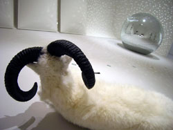 Børre Sæthre — "Dead Snow World Systems" A Norwegian artist known for ethereal installations, Sæthre has tuned out the world with his stark white room. Treading shoeless on a white carpet, viewers move among a surreal scene with a giant mirror ball in one corner and a white mountain goat with a black tether in the other. With it's ambient soundtrack and spaceship interior, you feel like you've just stepped into Stanley Kubrick's "2001: A Space Odyssey."