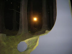 Takashi Kuribayashi's installation "Sumpf Land" adds to TAC's facade as well, but only becomes complete as art work on the inside. From the outside, it hides in plain sight as a small garden in a second flower window. But inside the maze of hallways, it's a revelation. A small room houses a table and chairs, with the only odd element a seal with its head through the ceiling. Climb up on the table and stick your head through a small hole, and the seal's head confronts you in a lush, fern-filled natural pond — the garden spied from the outside. With the water coming right up to your neck, its a refreshing, unexpected experience.
