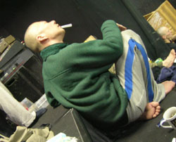 So the instruction is a success, but it's only a small part of the atmosphere that Takuya Muramatsu wants his Butoh-ha Dattan (Tartar Butoh) troupe (an offshoot of the legendary Dairakudakan troupe) to create. After his three dancers — Tomoshi Shioya, Ikko Tamura and Atsushi Mastuda — have perfected that motion, it's time to tackle the tongues.