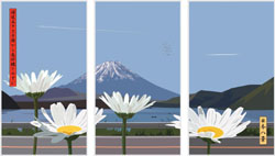 It is fitting that Julian Opie's first show in Asia is be held in Japan, whose history and culture of illustration as art inspired him to make many of the works on display. Opie collects ukiyo-e (genre painting) prints by Kitagawa Utamaro and Utagawa Hiroshige, as well as hand-painted anime cels. He says that he is still looking for ways to incorporate the latter into his work, but the influence of the ukiyo-e masters and a variety of other Japanese sources are already evident throughout the exhibition.