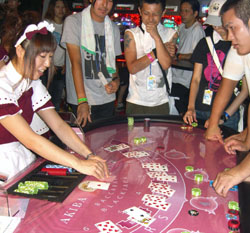 The Tokyo leg kicked off in fine style. With 120,000 punters watching 107 acts from around the world, boredom was never going to be on the agenda, but opening the Dance Stage with lo-tech idol-pop trio Perfume got pulses racing right away. For me it was a damp squib — the girls played just four songs, instead yapping away for ages in voices so high-pitched as to be barely audible about how much they love the summer; and worse, they were clearly miming to the songs. But the thousands of fans in the packed hall didn't seem to care, won over by the immaculate choreography to such amazing tracks as "Polyrhythm" and the suspiciously named "Baby Cruising Love." The two-day party had well and truly started.
