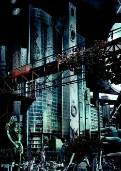 Although the Japan pavilion was on the lips of many visitors in the opening days, it was not selected for the prize. Jeffrey Kipnis, the leader of the jury panel, pronounced it simply "too beautiful." The honor went instead to the considerably darker perspective of the Polish pavilion for "The Afterlife of Buildings." This presented a mordant vision in large photomontages of the future of contemporary edifices 50 years hence when they have been repurposed due to encroaching urban problems of overpopulation and inequality.