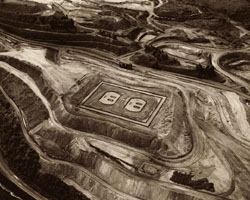 During their heyday, the two movements were very different in practice, but Muniz has brought them together in the "Earthworks" series. Working at a Brazilian mine for months, the artist orchestrated huge excavations to produce Pop-like images that can only be seen from the sky: a pair of dice, a set of footprints, an electric socket.