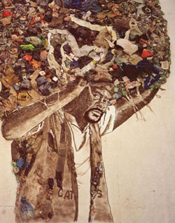 The portraits of the people are made out of empty spaces, out of what wasn't garbage. Shown themselves in this light, the trash collectors were astonished. Two have since left the dumps; another, Tia~o, is using $64,097 from the project — money Muniz raised in an auction at Phillipe de Pury in London by selling the portrait he did of the politically active young catadore — for the Garbage Pickers Association of Jardim Gramacho.
