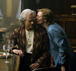 As Ben grows up, he becomes younger and stronger. He goes to work on a tugboat, piloted by Captain Mike (Jared Harris), a drunken Irish sailor (cliche alarm bells ringing now), and eventually travels to Murmansk, where he meets a diplomat's wife (Tilda Swinton) and has an affair, before getting caught up in World War II. Returning to New Orleans after the war, he meets Daisy, now an adult (and played by Cate Blanchett) and a successful ballerina, working in New York City and Europe. Ben, much younger now, pursues her, and the two have an on-off romance that lasts their entire lives. (No points for guessing who that old woman in the hospital is.)