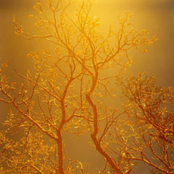 Also on show at NCA is her latest work "Untitled Nature," which reflects a further exploration of light and landscapes. The eight-print series consists of four pairs of photographs, each with an ethereal, monochrome bird on the left, contrasted with a vibrantly lit tree on the right.