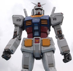 Near the Rainbow Bridge, on the manmade peninsula of Odaiba, a "life size" rendition of a Gundam robot will stand guard as a representative member of the influential "Mobile Suit Gundam" television series, which this year is celebrating its 30th anniversary. The 18-meter-high armored figure, replicated right down to its double-nozzle jet pack, sits as the centerpiece of the Green Tokyo Gundam Project, an event aimed at raising funds for the Tokyo Metropolitan Government's push for a more environmentally friendly future.