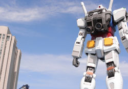 Organizers are expecting 1.5 million visitors to arrive at Shinagawa Ward's Shiokaze Park through the end of August to view, free of charge, the 35-ton fabrication of fiberglass and steel up close and mingle at the surrounding booths and stalls selling robot models and T-shirts. A portion of the proceeds will be donated to the Green Tokyo Fundraising Campaign, an organization that will utilize the ¥800 million it hopes to collect by 2010 for such activities as the planting of roadside trees and the establishment of lawns within schools.