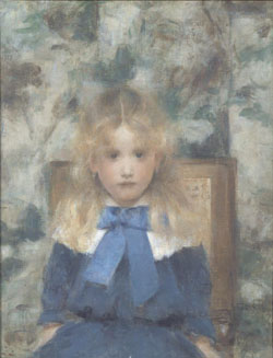 A s one would expect, Belgium's unique situation is reflected in the art at the exhibitions. Rather than developing a distinct local style like Dutch, English, or French painting, the Belgian art scene became something of a conduit through which ideas, influences, and foreign artists flowed. The Sompo highlights this best, focusing on the cultural hotline between Paris and Brussels, which allowed Paris-based movements, like Impressionism, Pointillism and Fauvism to spread rapidly north. For example, the subject matter and light, feathery brush strokes of Fernand Khnopff's "Portrait of Mademoiselle Van der Hecht" (1883) are an obvious stylistic echo of Pierre-Auguste Renoir, but without the French Impressionist's personal obsession with rotundity.