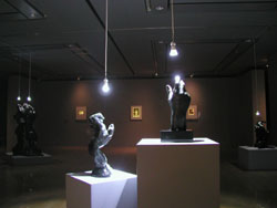 Fujimoto adapts the term "camera obscura" to the exhibition title and also the exhibition space. It can take several minutes for the eyes to adjust in a room-sized camera obscura and about the same in Fujimoto's dark installation. On entering, you are asked to remove wristwatches and rings, and in a mostly unlit room you are invited to grope several of the exhibits nearby, including a few sculptures by Auguste Rodin (1840-1917) and one by the modern French sculptor Emile Antoine Bourdelle (1861-1929).