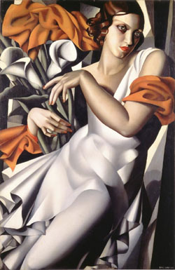 Lempicka's persona was no doubt influenced by her background — an uprooted aristocrat from a broken home. Born into a prominent Polish family in 1898, her parents divorced when she was 14, and she went to St. Petersburg to live with an aunt. It was here she met and married her first husband Tadeusz de Lempicki, a playboy attracted by her dowry. Following the Russian Revolution of 1917, however, the young couple found themselves part of the flood of upper-class emigres to the West, and they settled in Paris where Lempicka soon turned her hand to painting.