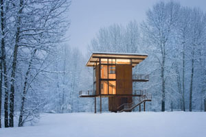 Designed to make people think about and question architecture, the exhibition not only educates viewers, but offers an entertaining presentation of the creative skills of innovative architects. Tom Kundig's drawings and photos, for example, fold out as you turn a large wheel or when you move a weight in a pulley system. Visitors can lose track of time and space in this show, which impressively fits seven "buildings" inside a small two-story one — a creative architectural feat in itself.