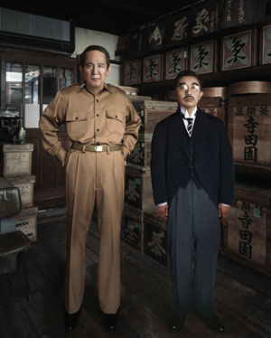Born in 1951, the year that marked the end of the Allied Occupation, Morimura considers himself to be the offspring of the United States and Japan. For this image, he staged a wedding-like photo with General Douglas MacArthur of the United States as his father and Emperor Hirohito of Japan as his mother — both photographed at his real parents' green-tea merchant house in Osaka. Emperor Hirohito and his actions during World War II continues to be an extremely sensitive subject in Japan, yet here Morimura tackles the Imperial family without raising any tension among Japanese right wingers.