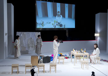 Among those plays was one that was actually midway through a seven-week run at the Tokyo Metropolitan Art Theatre in Ikebukuro when the earthquake hit. Written and directed by Hideki Noda (42), one of Japan's foremost dramatists, "To the South" was canceled on March 11 and over the weekend. But on the Tuesday, the theater reopened and it was back to business as usual. Except for those performing and those watching the play, it wasn't business as usual at all.