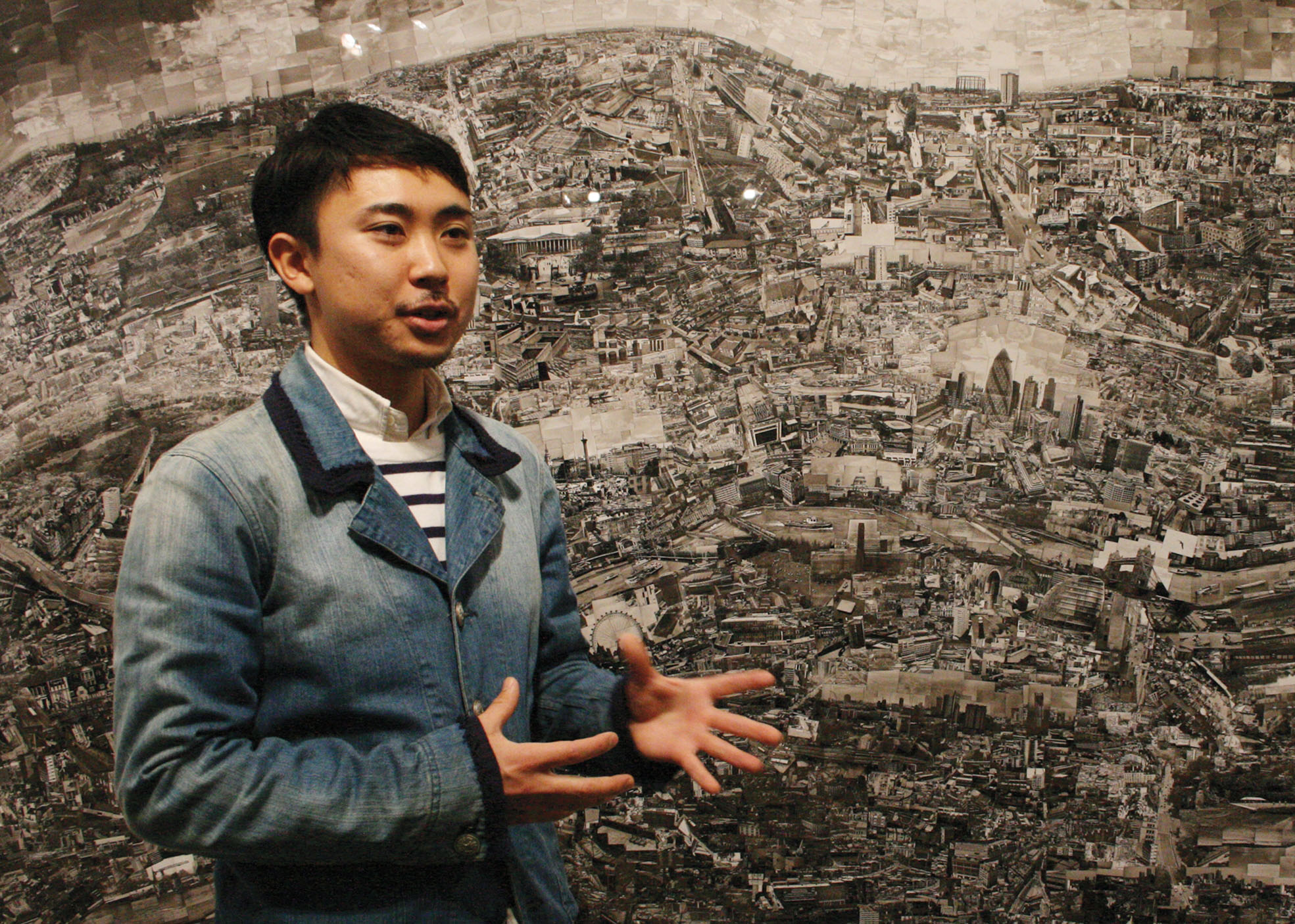 Nishino, who at 29 is the youngest of the artists represented, began working with collages while still a university student. He creates what he calls "diorama maps" — highly personal recreations of cities as he himself experienced them. Walking a city for as much as a month, he shoots hundreds of rolls of black-and-white film with a 35 mm camera, taking photographs from all sorts of vantages.