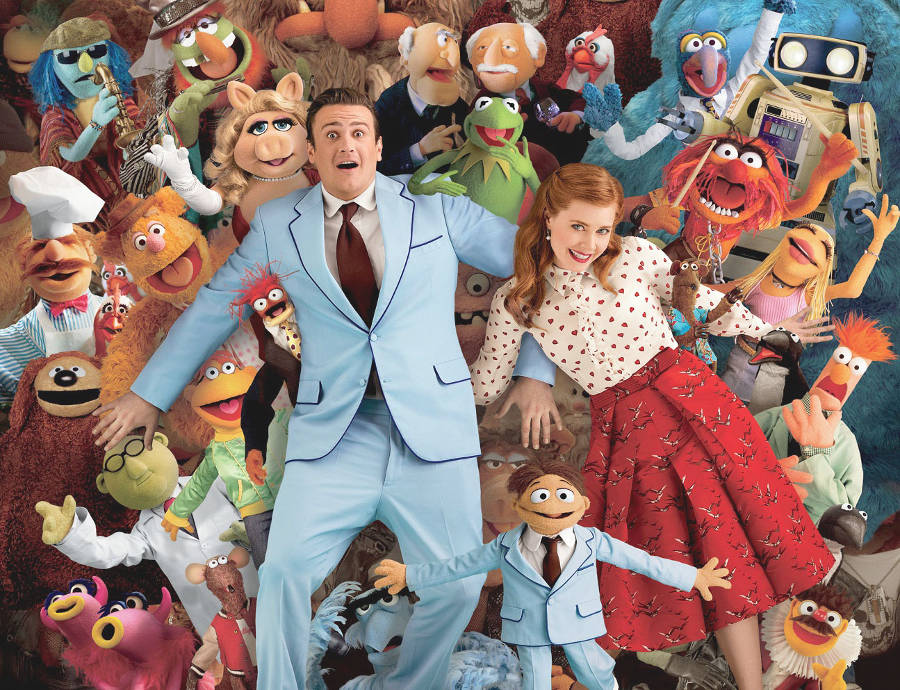 On the sidelines are the real people — from numerous celebrity cameos such as Whoopi Goldberg, Dave Grohl and Selena Gomez ("I don't really know who you guys are; my agent just told me to show up"), to Muppet-loving couple Gary and Mary, played by Segel and Amy Adams. Gary has a special soft spot for the Muppets, having grown up with a "brother" Muppet called Walter. Through the years, as Gary grew to adulthood and is about to celebrate a 10th anniversary with Mary, Walter has remained exactly the same height ("three feet tall") and appearance. Understandably, Walter feels a little out of it, and longs to be a part of The Muppets.