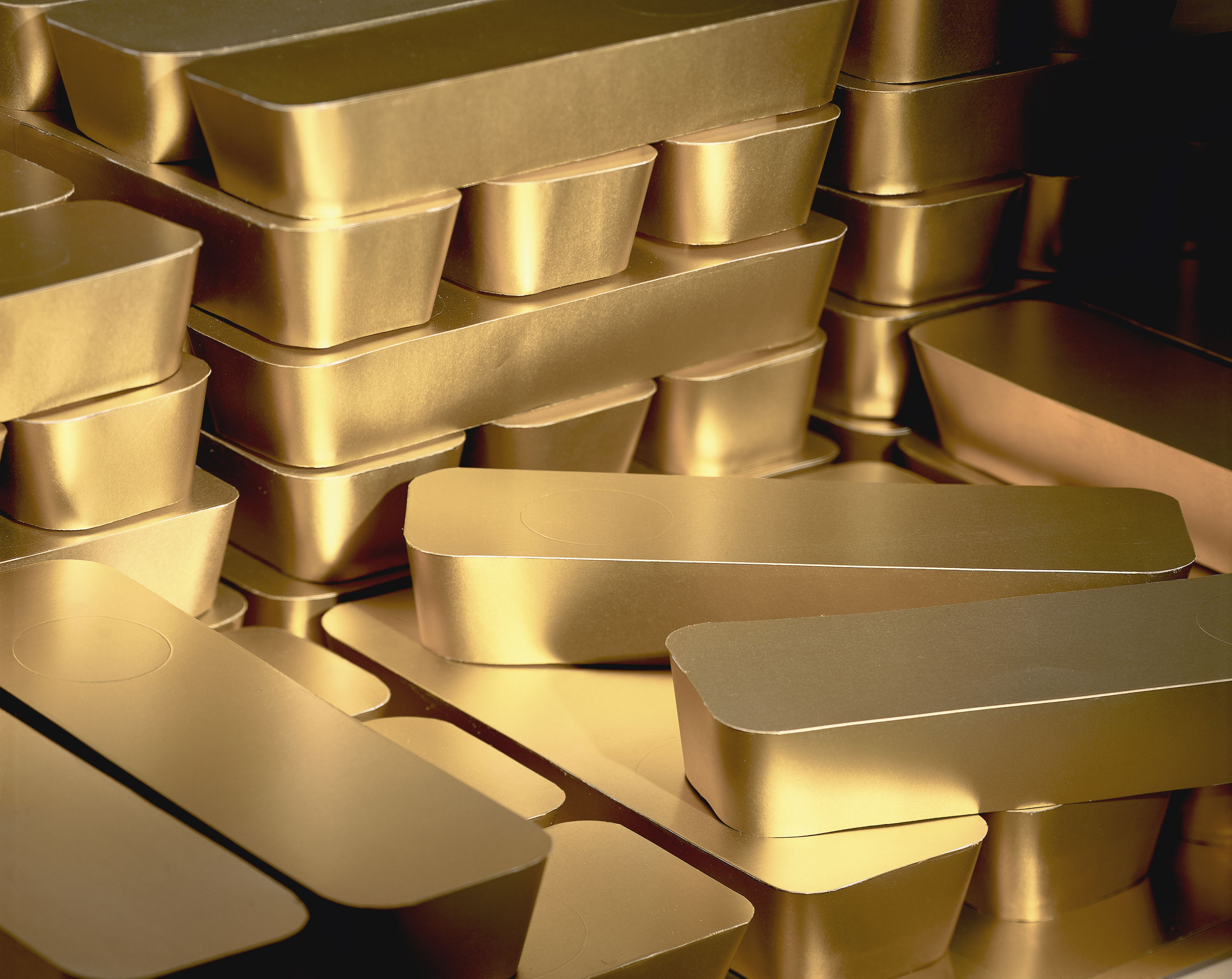 Other works explore the totemic power of images. "Bullion" (2003) recreates the kind of stereotypical photographs of gold bars that are routinely used in the media during financial crises — as if to create a reassuring image of wealth and financial stability.