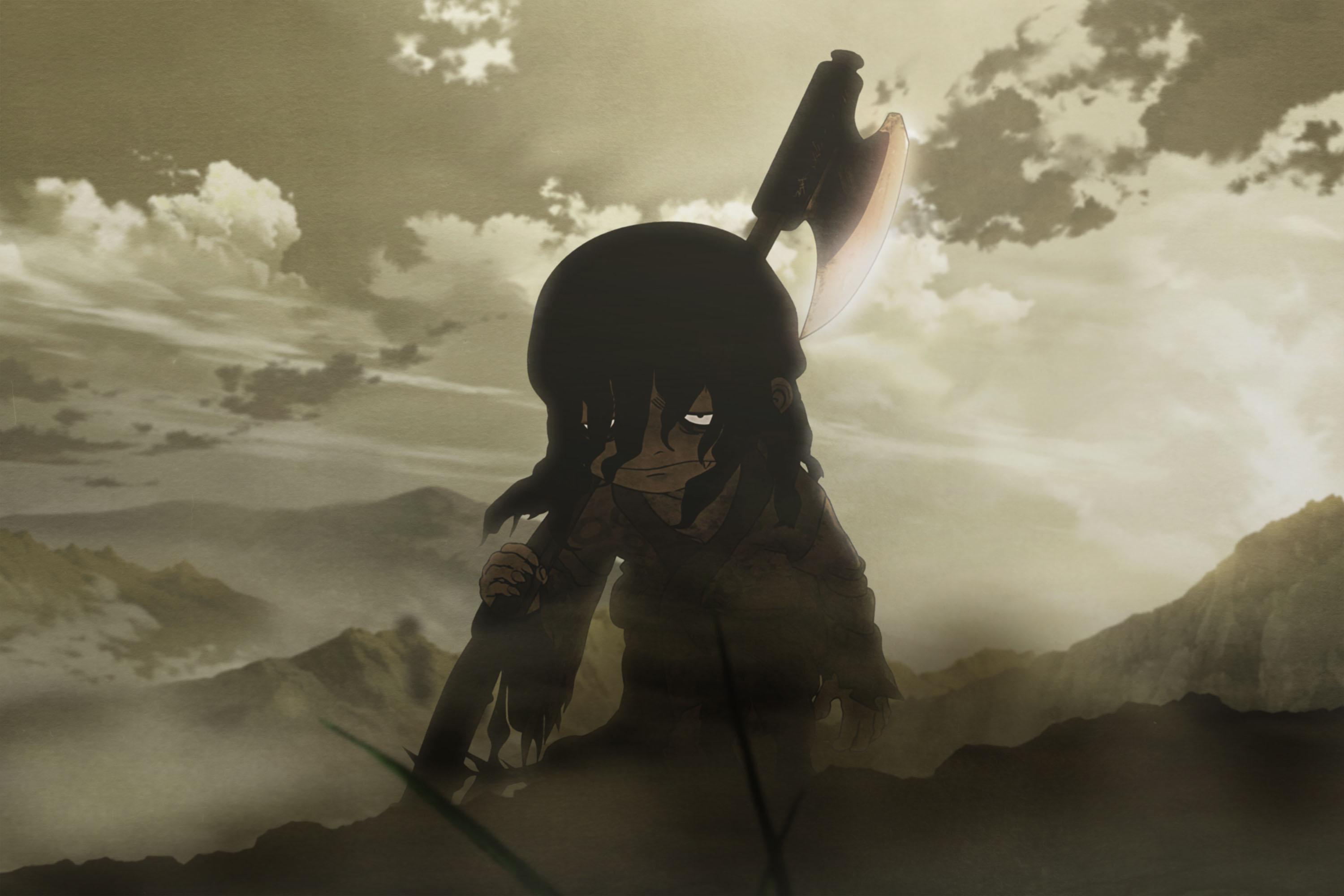 An anime with a sad-eyed waif as the hero must surely be something for the kiddies, no? Well no, if the waif carries a blood-stained axe and greedily devours human flesh like a starved wolf.