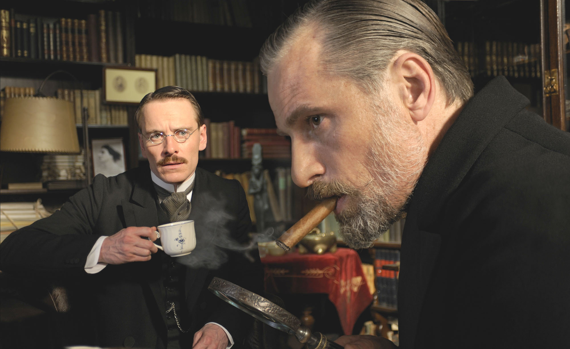 It's fascinating to watch these people probing for answers, wrestling with their own concepts and heading off toward destinations intellectually unknown. It's also bemusing to see how those treating psychological disorders were far from immune to them: There's Freud, with a big phallic cigar planted in his mouth in every scene, an oral fixation if ever there was one; Jung, who Oedipally turns against his father-figure Freud, while also replacing the abusive father in Spielrein's life. By "treating" her disorder through indulging it in spanking-heavy liaisons, he engages in the very counter-transference he would later warn against in his writings. His relationships with his buttoned-up, too-perfect Aryan wife, Emma (Sarah Gadon), and the Jewish, sexually frank, unstable Spielrein also reveal a classic madonna-whore complex.