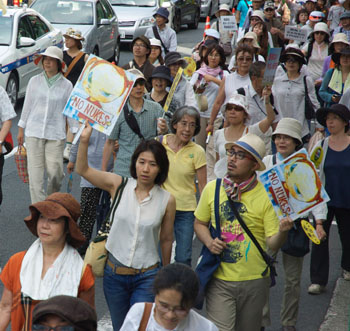 Nara allowed only hints of post-disaster confusion to infiltrate his trademark portraits of children. (At the same time he gave his blessing for one of his earlier works, of a child holding a "no-nukes" sign, to be used in rallies against nuclear power.) Aida reveled — as he always has — in depicting yet another type of Armageddon. Takamine, whose exhibition has only just opened, digs the deepest into the national psyche, suggesting through a series of videotaped interactions that Japan's problems stem from a kind of unspoken, overwhelmingly numbing form of peer-group pressure.