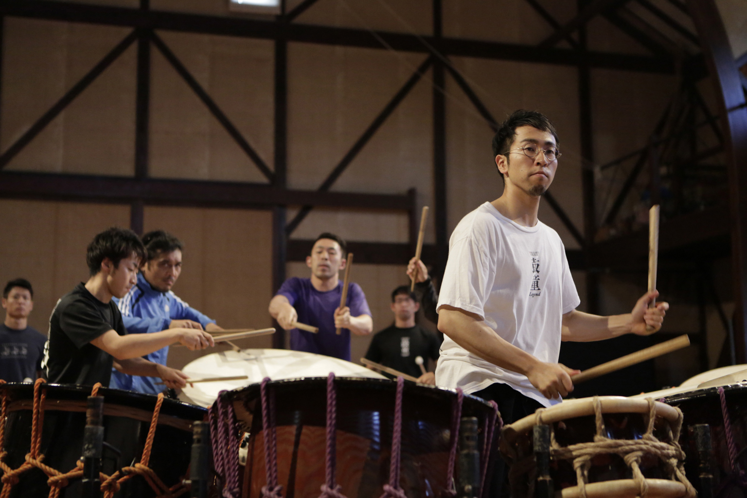Laughing as he explained the attraction he felt then, Ishizuka, a native of Saitama Prefecture, said, "To be frank, the biggest charm of wadaiko is that it's not necessary to study complicated theory to play. If you just beat a drum, it comes out as some kind of music.