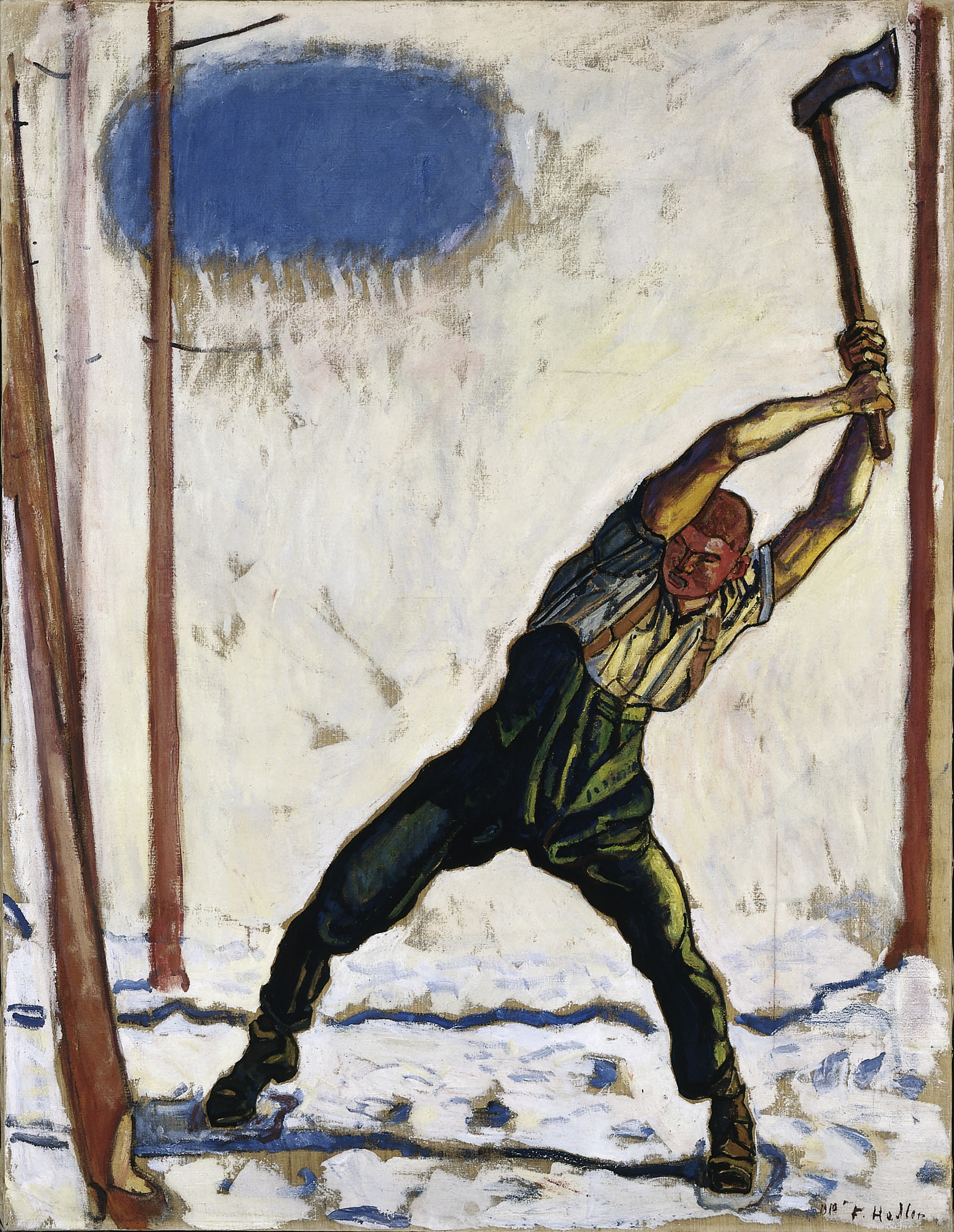 Another work in a similar vein is "The Woodcutter" (1910), a vigorous image of a man swinging an ax. This was among some works commissioned by the Swiss National Bank to illustrate their new 50- and 100-franc bank notes. Hodler is said to have been greatly disappointed by the loss of dynamism that occurred when the image was reproduced on the bank notes.