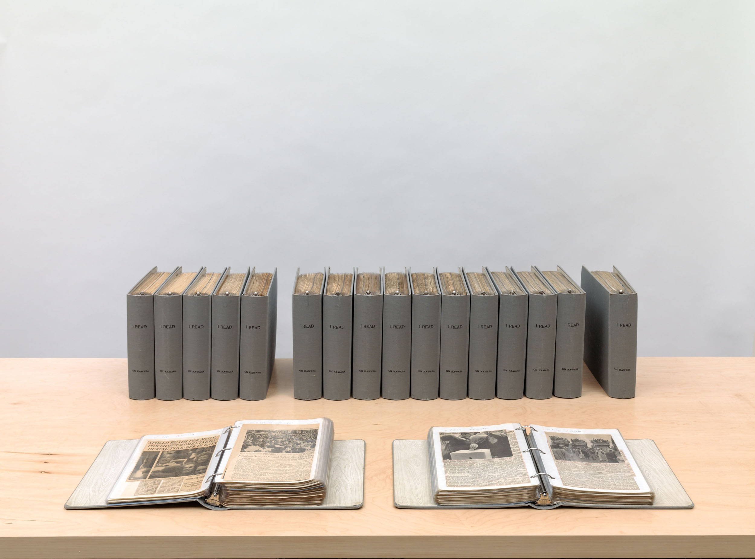 The Guggenheim also atypically exhibits the date paintings with their custom boxes, each with a newspaper clipping from the same day. Occupying the rotunda's first two rotations of the museum, the result is an unexpectedly nuanced history told in fragments of President Richard Nixon's foreign policy, advertisements, and excerpts from the New York Stock Exchange.