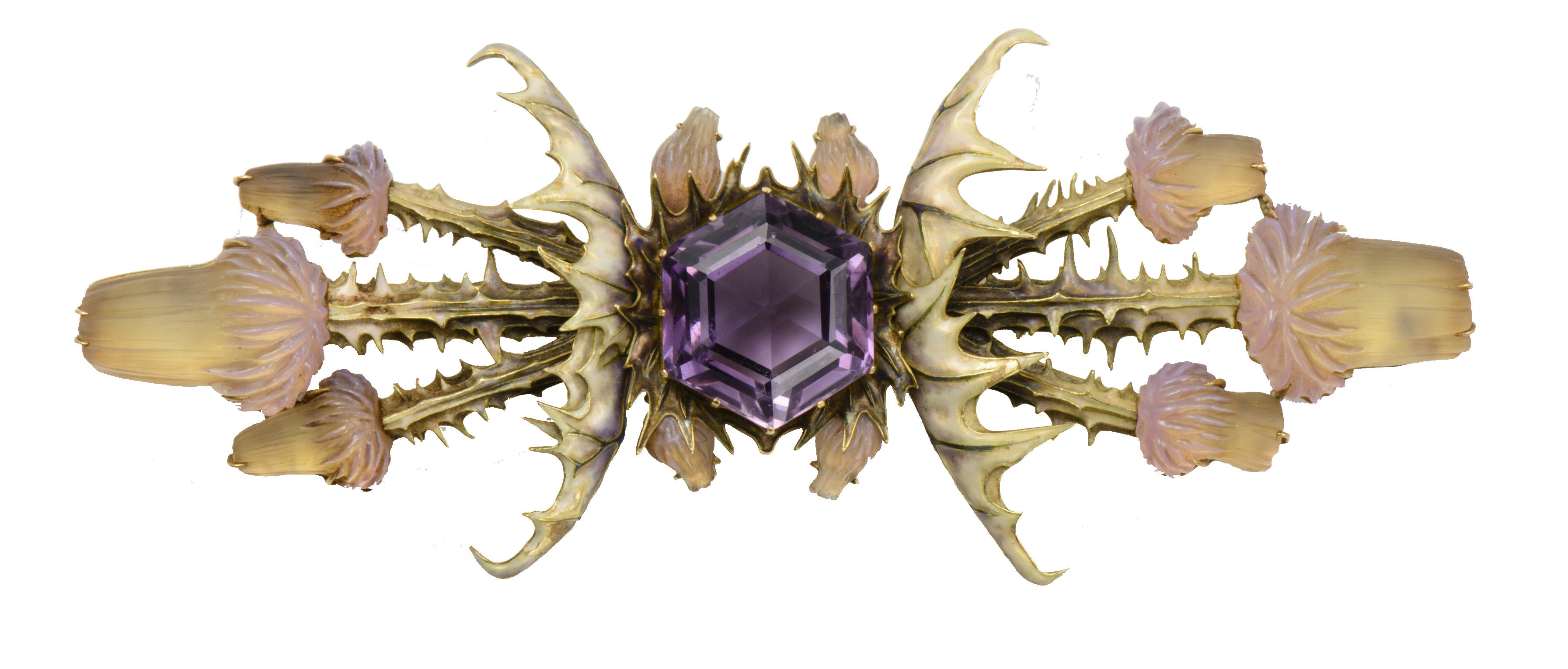 In light of all this, the exhibition's pièce de resistance is all the more special. The pearl-encrusted diadem of lilies embellished with colorful semi-precious stones — commissioned by Bernhardt for the drama "La Princesse Loinaine" and made famous by photographs taken by the Reutlinger Studio — is not only believed to be a rare collaborative work of Lalique and Mucha, it is also one of few pieces that seamlessly blends Mucha's artistic originality with the modern craftsmanship of Lalique and the fascination of Bernhardt.