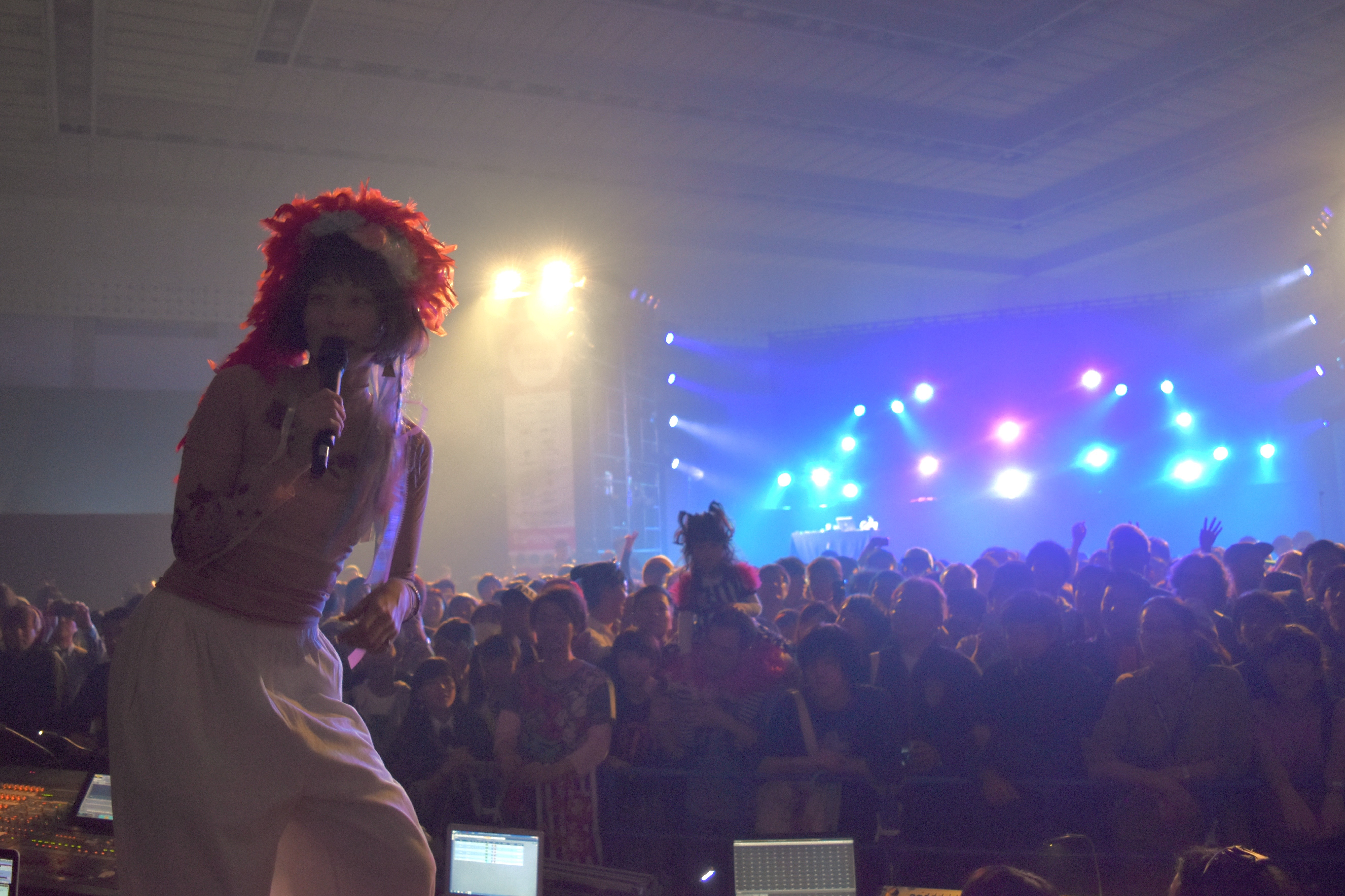 Wanting to take a break from the flashing lights and general ruckus, I slipped into the smaller, more intimate Nippon Stage in a room located just behind the main stage. Despite its lesser scale the crowd was still pretty hype. Charisma.com and Suiyobi no Campanella, two acts who have been on the rise as a "girls' rap" trend has been making the rounds in the Japanese music media, were the highlights at the Nippon Stage. Charisma.com completely won the crowd over with its aggressive tunes and smooth verses that showcased the two members' feisty attitudes. True to the group's name, the pair charmed fans with humor before finishing up their set with a collaboration with the young dancers of Tempura Kidz.