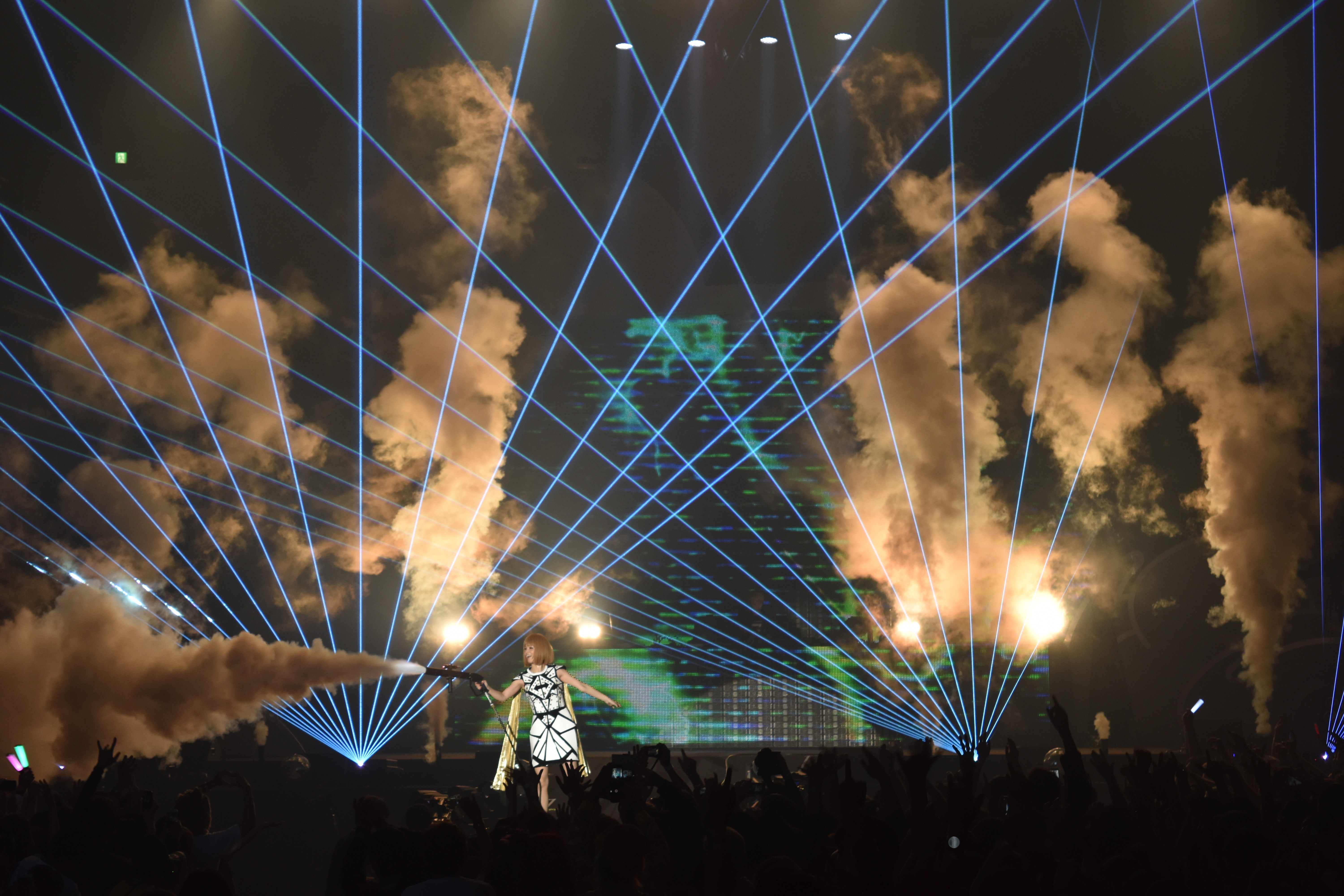 Heading back to the Moshi Moshi Stage for the main performance of the night, I was met with an even larger and livelier crowd throwing their hands up in the air as the almost deafening tunes of electronic duo Capsule filled the venue. Yasutaka Nakata, the producer behind Perfume and Kyary Pamyu Pamyu, worked the DJ booth while vocalist Toshiko Koshijima blasted the audience with a CO2 smoke gun. The energy levels, already pretty high, skyrocketed further as Harajuku's pop princess walked on stage singing her hit song "Fashion Monster." The crowd got dancing as she went on to play "Ninja Re Bang Bang," "Tsukematsukeru" and latest release, "Crazy Party Night ~ Pumpkin no Gyakushu."