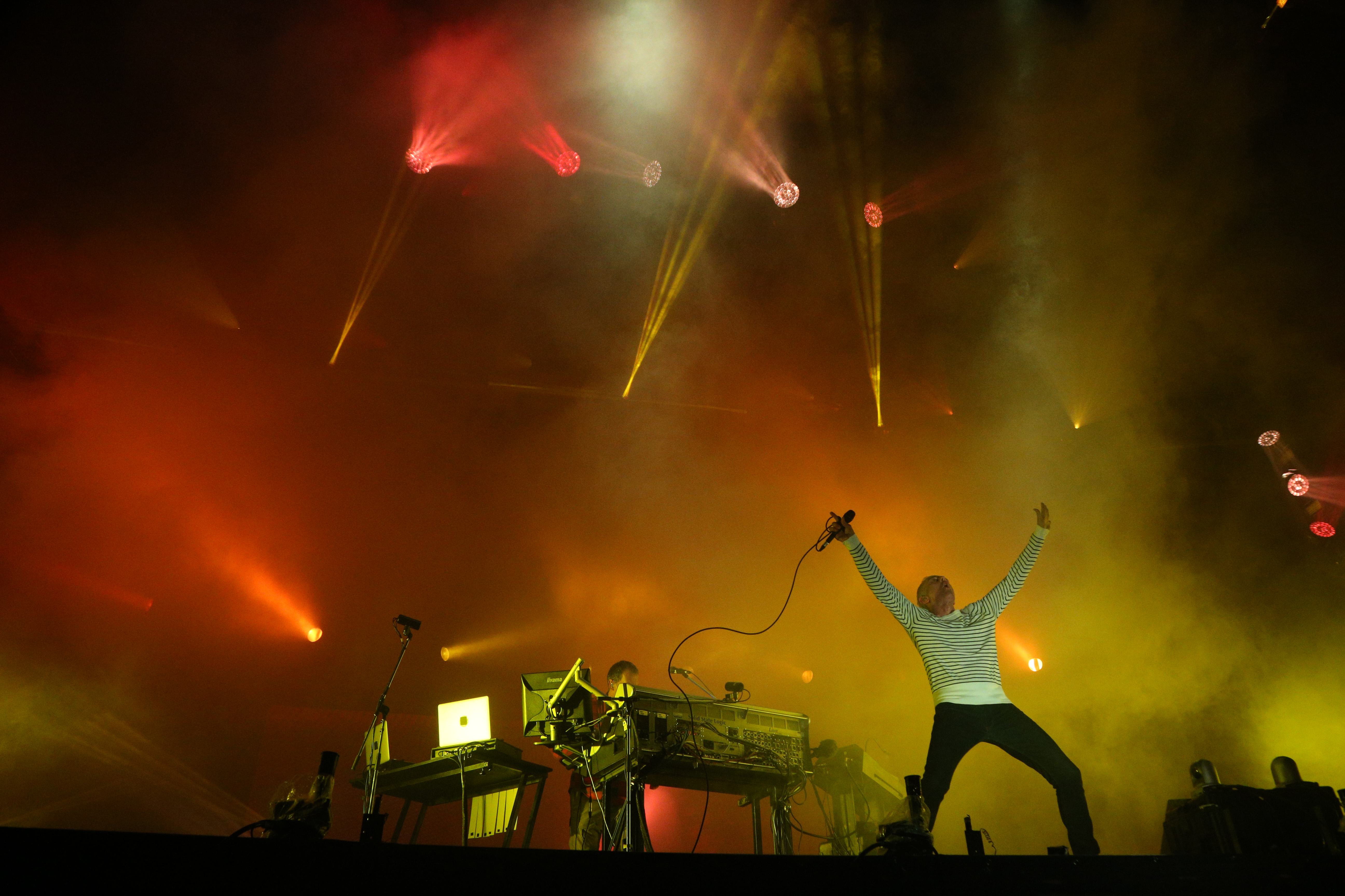 Summer Sonic featured many established names, but with mixed results. British electronic duo Underworld headlined Saturday (which saw 55,000 in attendance) with a set of booming dance tunes presented like a rock set. It was designed for listeners to get lost in, explaining why the stage's smoke machines worked overtime. Yet there was plenty of space both in the main pit and in the upper deck by the time Karl Hyde and Rick Smith concluded with megahit "Born Slippy." Their presence, though, allowed the festival to make shirts featuring the Union Jack, adorned with the groaner "Keep Calm and Summer Sonic."