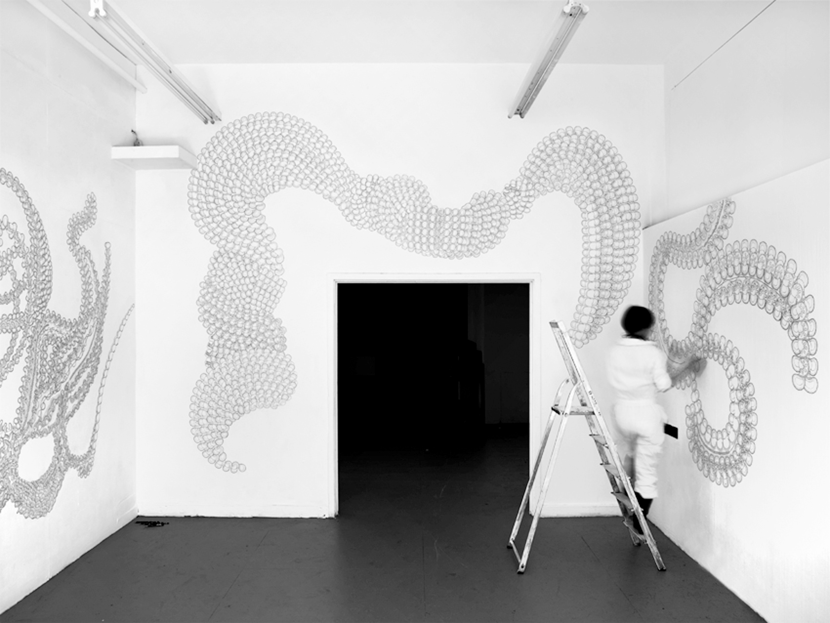 Suzuki's drawing projects are fecund, semi-figurative, vaguely obscene growths that evoke both the elemental beginnings of life and the complexity of computer-generated fractal imagery. As participatory performances, images will emerge as visitors contribute to the piece, and disappear by the time the event ends.