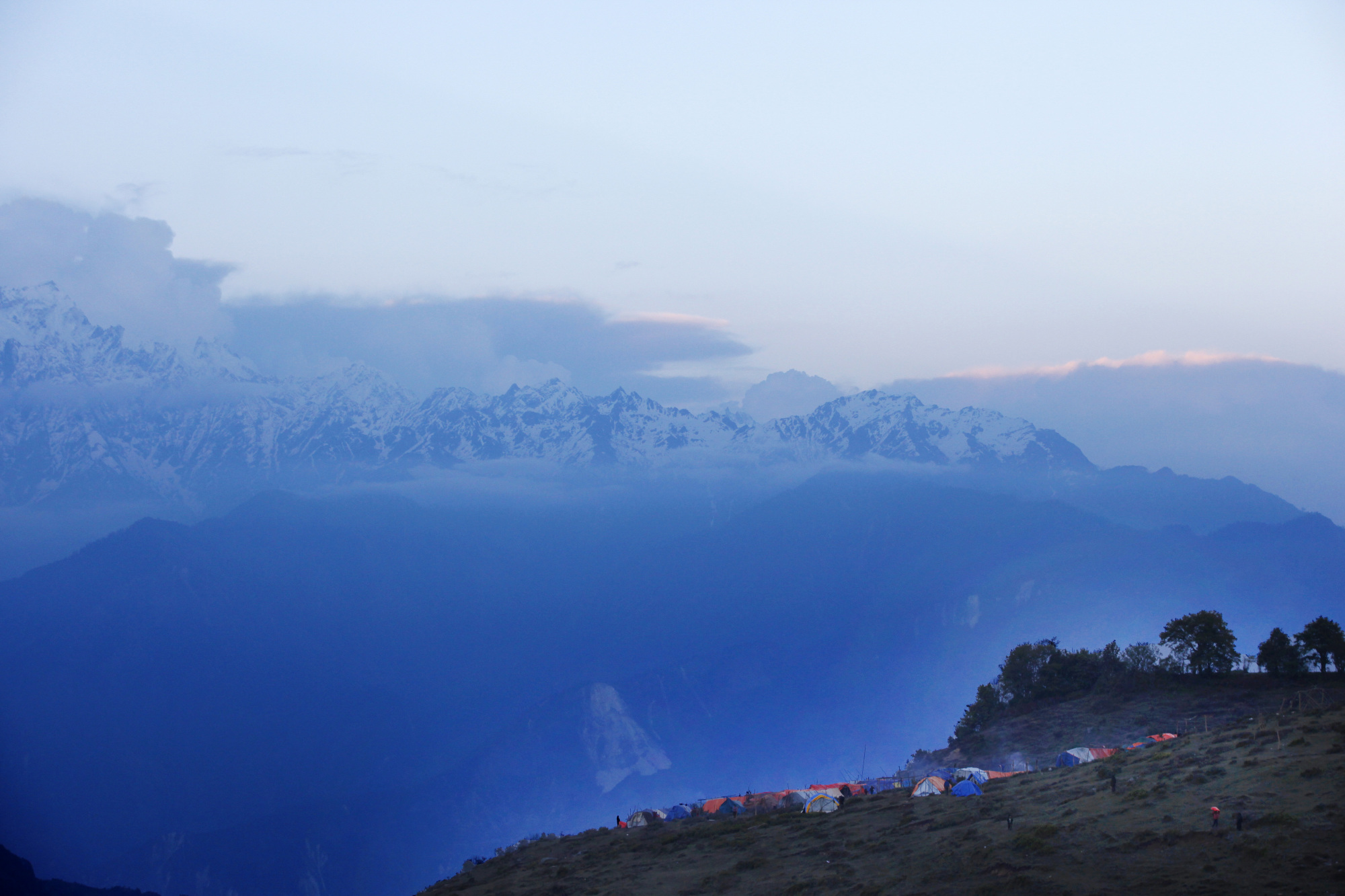 A 90-minute trek away from the devastation of Laprak, the photographer found himself in a makeshift refugee camp for the village's residents farther up the mountain. They were living in primitive tents, with nothing more than plastic sheets to shelter them from the elements.