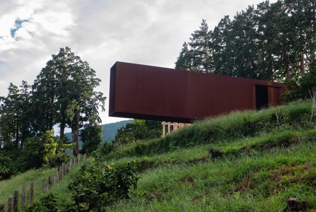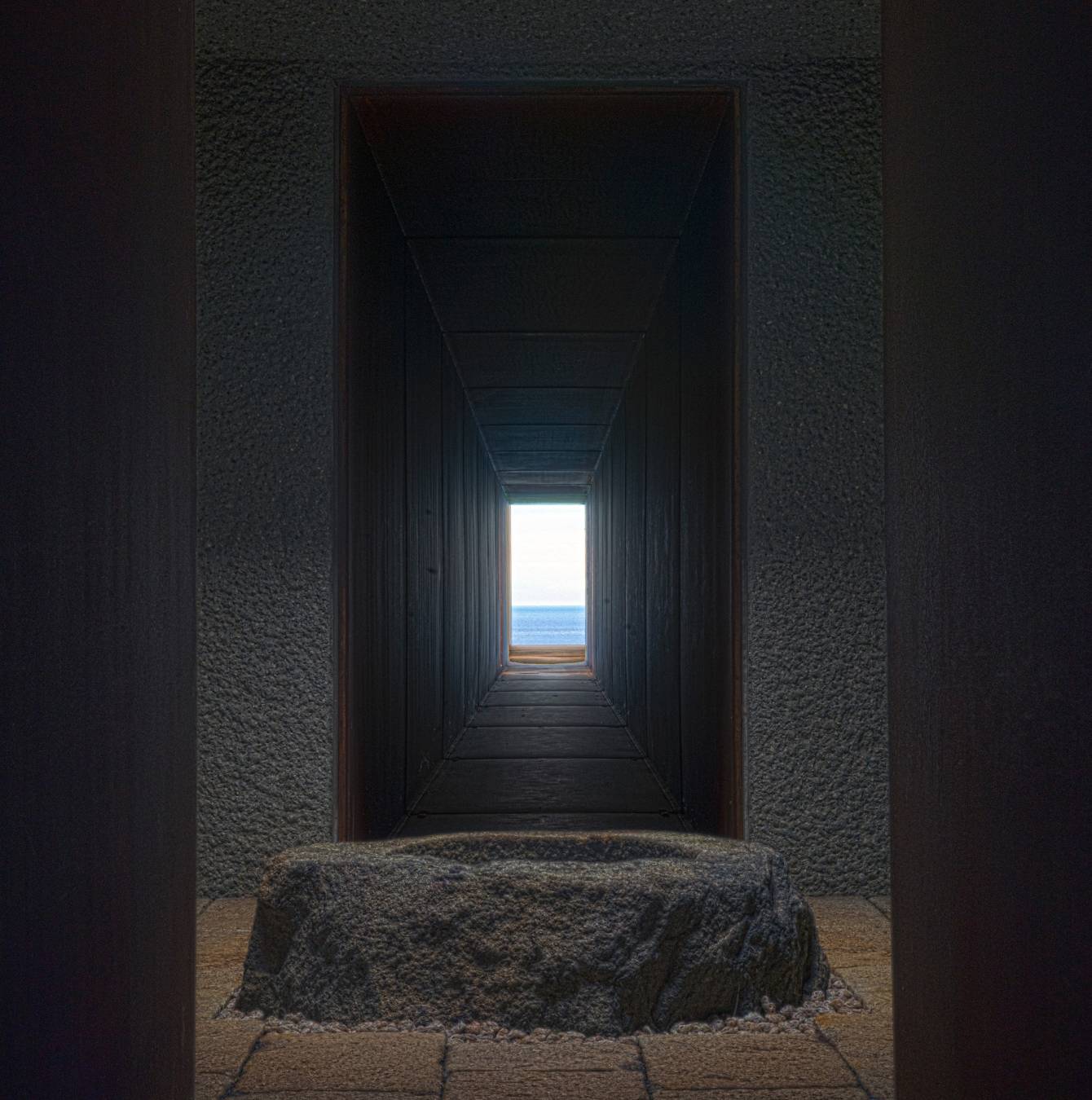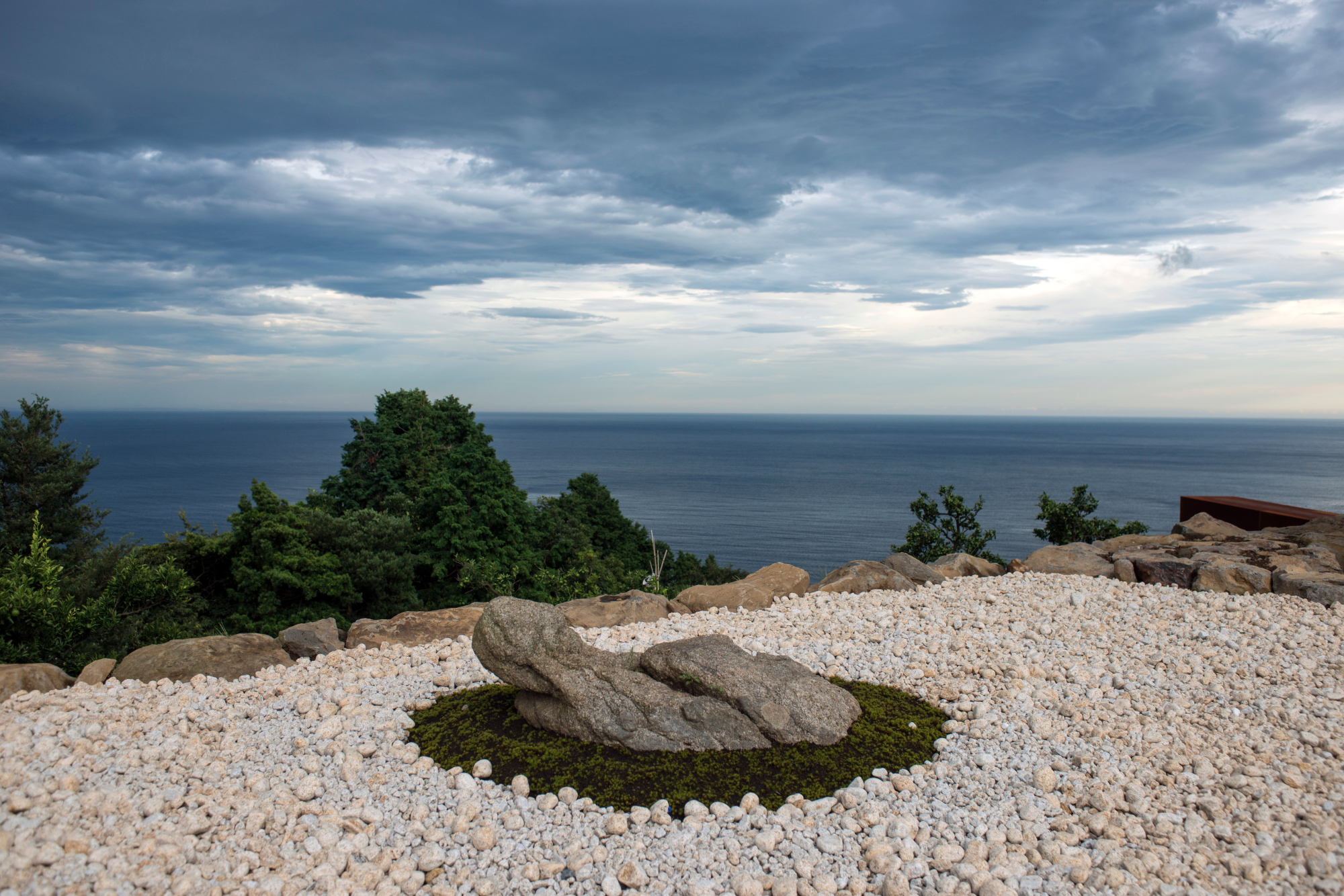 It incorporates a further three outdoor stages as well as a 100-meter-long art gallery that juts out from the hillside, thrusting toward the ocean; a rusting chamber that starts underground and exits at a sheer, though shallow, drop; and a Japanese tea room whose entranceway is marked by a torii gate constructed from a pleasingly jumbled assortment of ancient boulders.