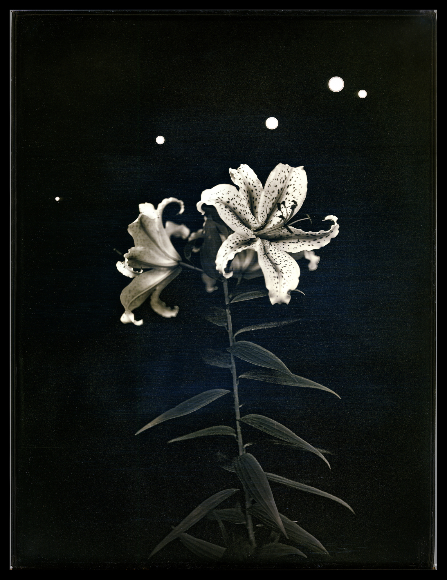 One of Arai's photographs in particular stands out: The ghostly image of an irradiated lily, white and juxtaposed brightly against the darkness of a silver plate. It's as if the photo has managed to preserve the spirit of the lily, suggesting that a link exists between life and contamination.