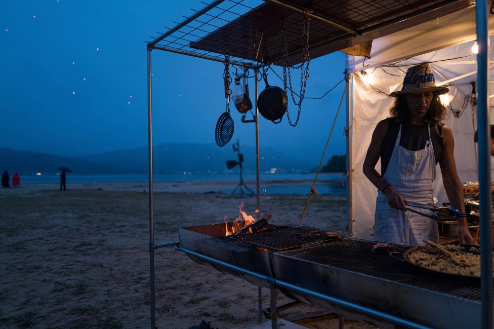Near the Beach Stage was a pop-up restaurant run by Rimpei Yoshikawa, the owner and chef behind the charcoal-fueled Shibuya restaurant Pignon, and his former sous chef Fumihiko Oumi, who is now the head chef at Delta, Kyotographie’s permanent space. Of course, natural wine expertly selected by wine importer Servin was also served at the eatery.
