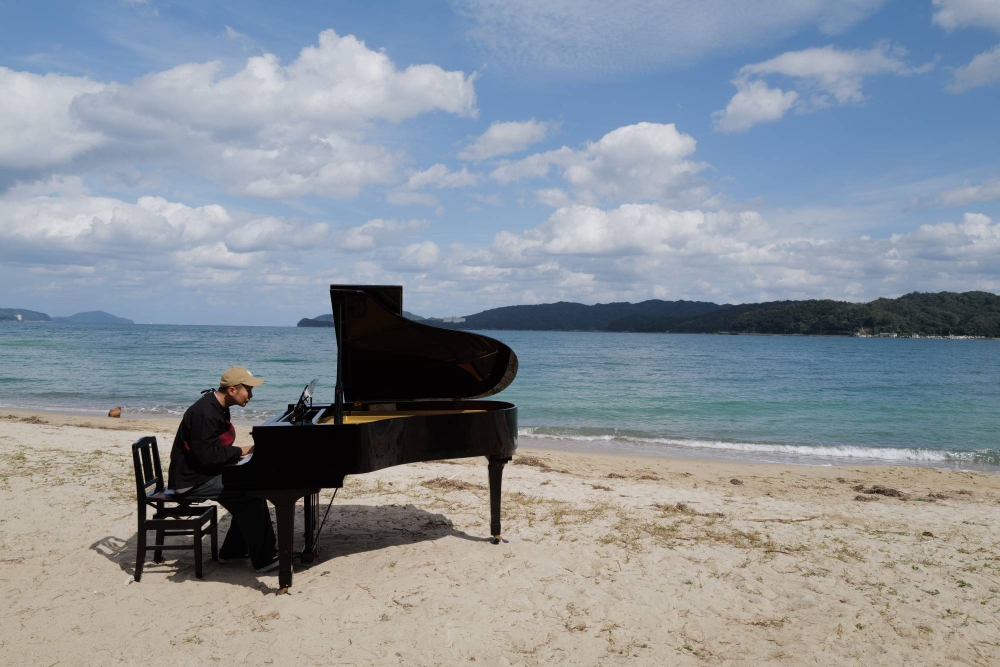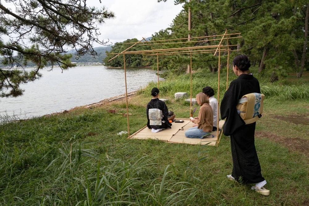 On the opposite shore, a minimalist skeleton of a bamboo tearoom called a Kian held sado (tea ceremony) for guests. The juxtaposition of an old-timey amusement tent, solitary seaside piano and barebones teahouse, complete with kimono-clad tea practitioners, lent an air of magic to the area between the two main stages.
