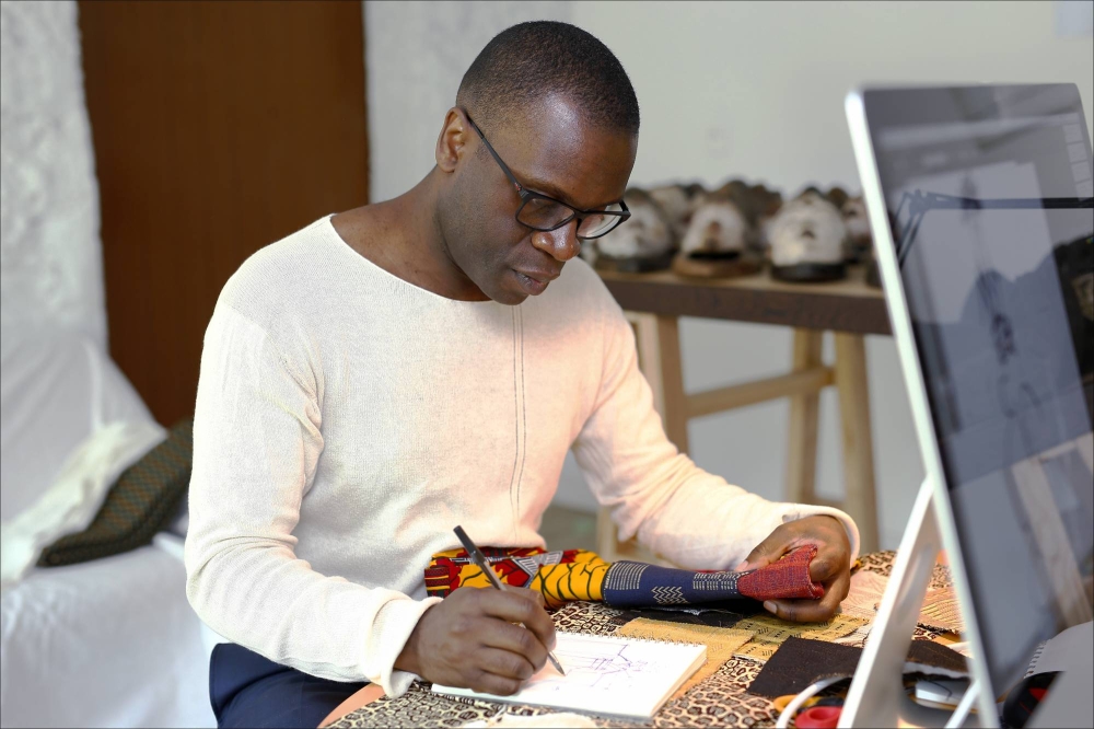 Mouangue further stresses that his approach is not about fusion but about juxtaposition — arriving at something new while keeping the components intact. It's a process that has involved working with several master Japanese craftsmen. At first, he thought it would be difficult to ask them to work with African materials. “But Japanese people in general tend to be very curious — eager to discover and learn,” Mouangue says. “It wasn't too difficult to sit down and say, ‘Shall we collaborate?’”