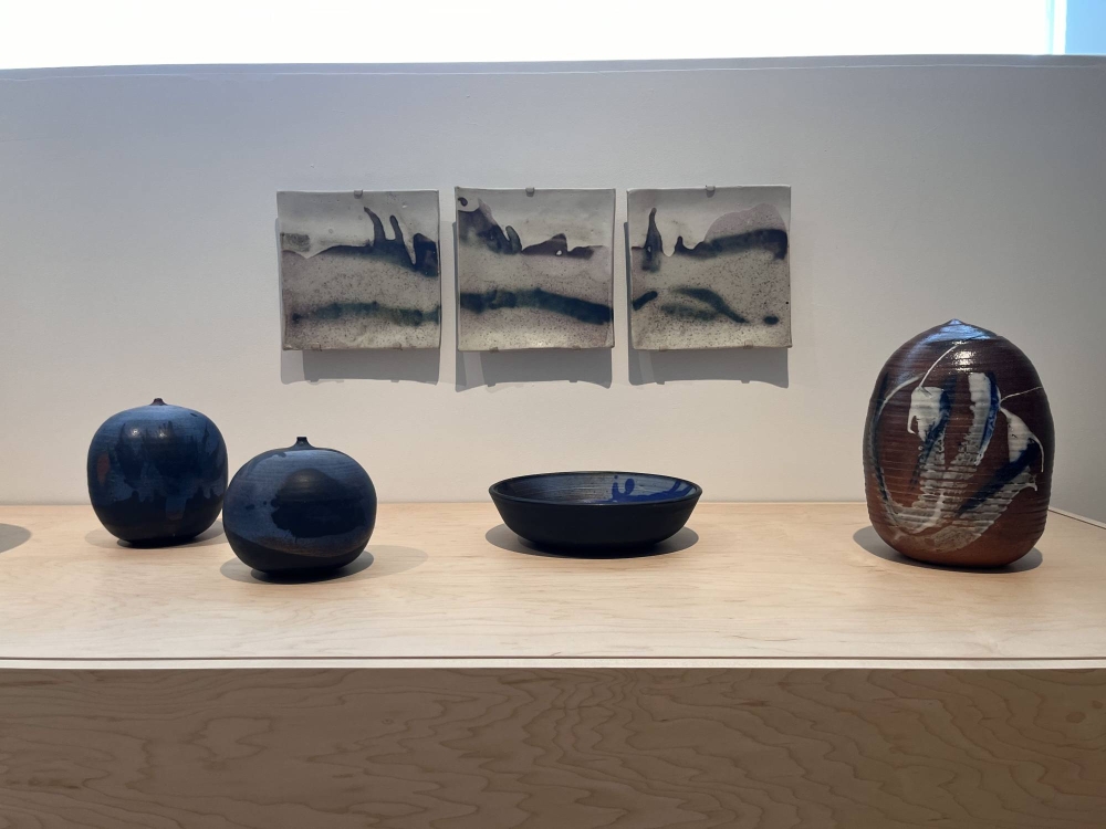 The nearly 200 works from 52 lenders show how Takaezu played with form across a wide range of mediums, including ceramics, painting and textile. At first glance, the pottery feels Japanese, until it doesn’t — bright, bold colors, like deep purple suggesting the flowers and ocean of Hawaii, and bold yellow, reminiscent of sand on the beach.