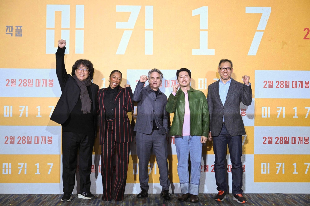 The title character of "Mickey 17," Bong Joon-ho’s silly-serious sci-fi satire, his follow-up to 2019’s Oscar-winning megahit "Parasite," gets this a lot. He’s an expendable, a person so desperate for work he’s agreed to be endlessly "reprinted” and endlessly killed doing super-risky jobs. When Timo (Steven Yeun) asks this question, Mickey (Robert Pattinson) is lying on his back at the bottom of an ice pit. Looking up at his best friend, who’s dangling a rope that’s just too short to reach him, Mickey sighs and furrows his brow. There’s no time for metaphysics; a gruesome, hungry-looking alien has just turned up.