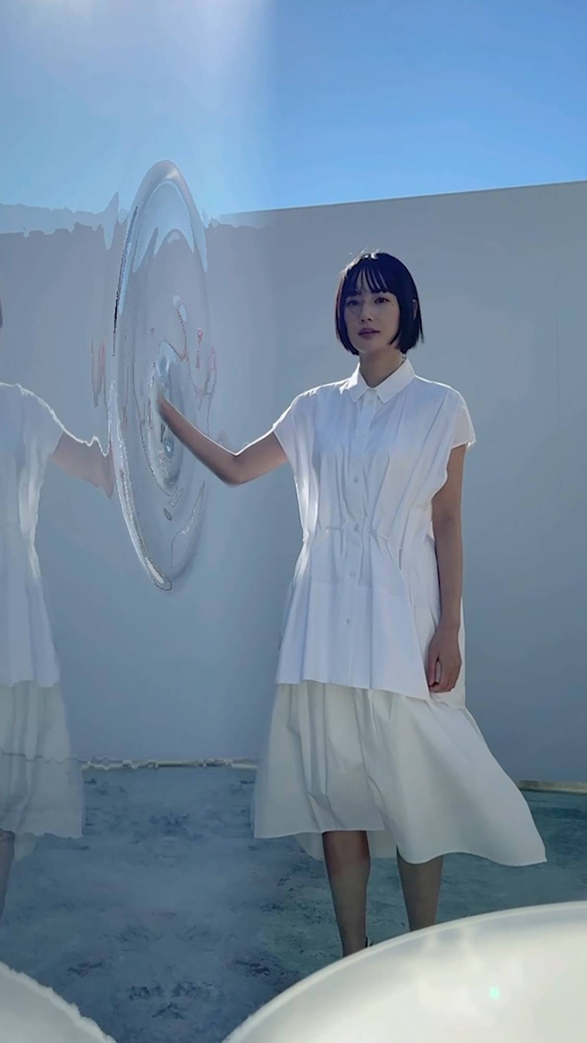 In 2022, Steckeweh presented an art project at Dogo OnsenArt, called “Aida no Yu,” meaning “The hot water in between,” featuring a real-time video installation, where based on the visitors movements, water ripples were projected on the window of a souvenir shop’s storage room.